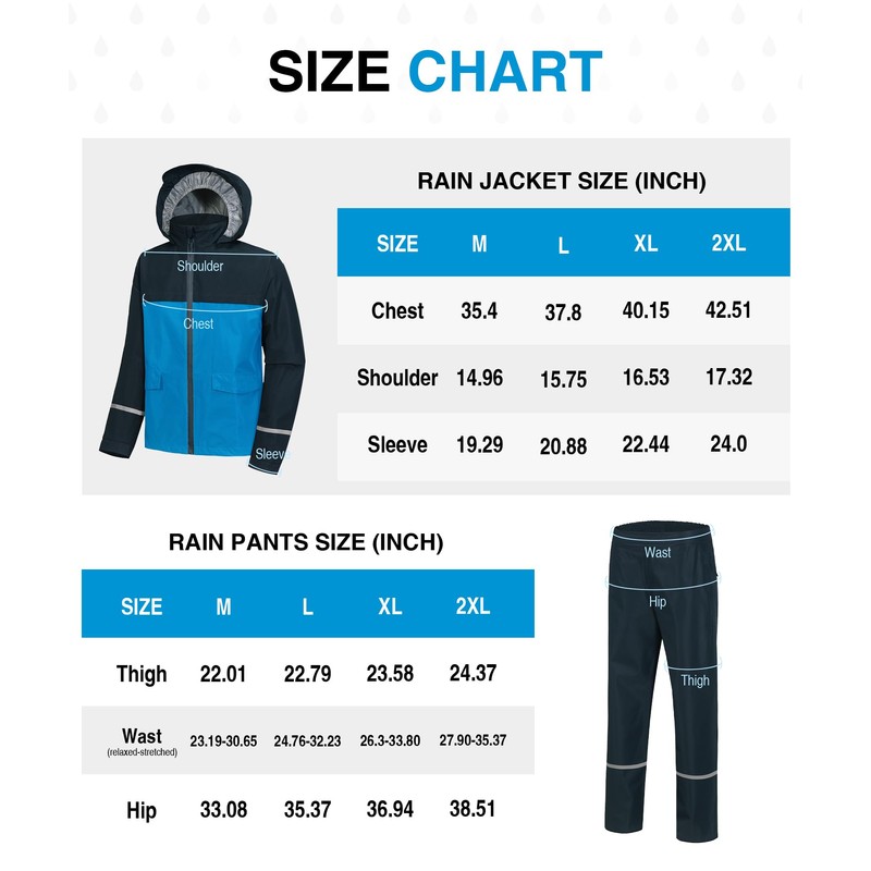 - Functional and Stylish Rain Pants: The waterproof rain pants are designed with a pull-on adjustable elastic waist for a customized fit. They have velcro-tab closures at the hem, 2 side waterproof pockets, and decorated pockets at the back. The rain pants also feature a reflective strip, providing visibility and safety during outdoor activities