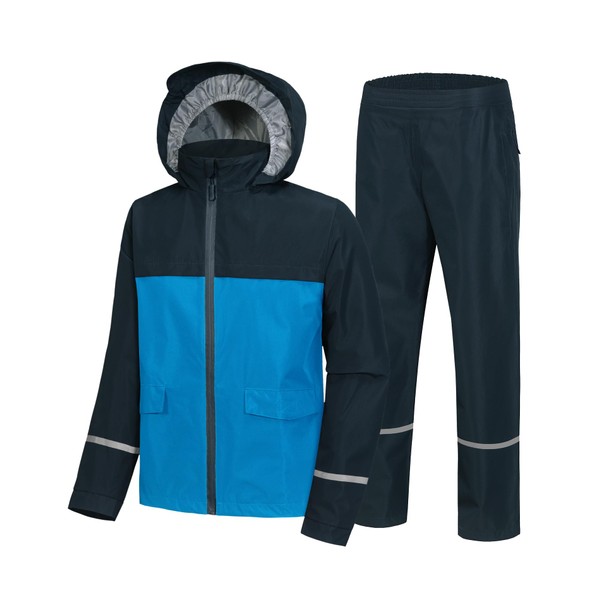 Dekomere Kids Rain Suit Boys Girls Rain Jacket with Flap Pocket and Waterproof Pants