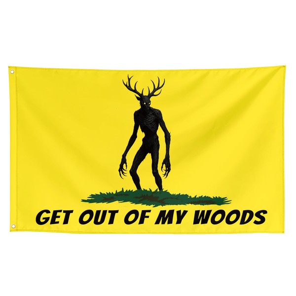 Dekorbay Get Out Of My Woods Funny Cool Wendigo Flags Meme Flags Banner 3x5 FT Room Guys Girls College Dorm Bedroom Frat Man Cave Outdoor Indoor Yellow
