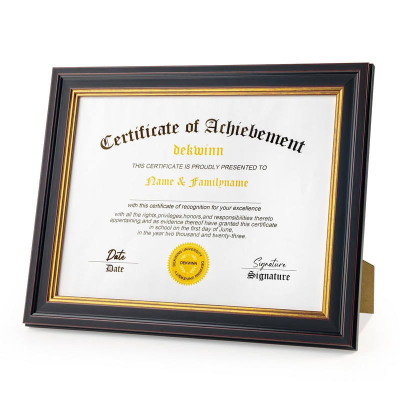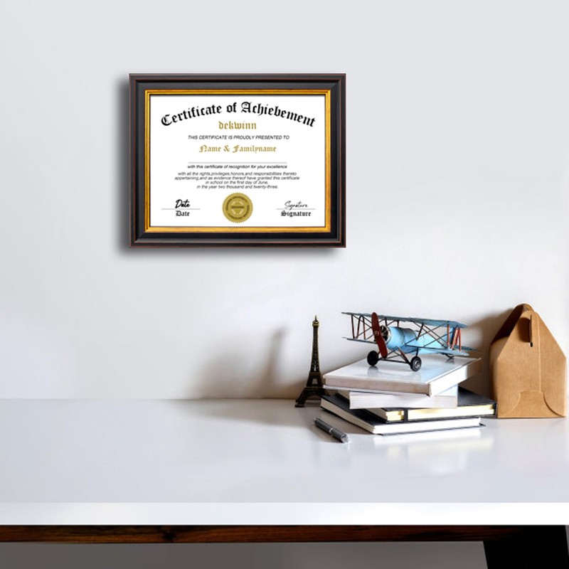 • EXQUISITE DESIGN: Frame Color is Black with Gold lines.1 Pack picture frame to provide an elegant display for your 8.5x11 certificates and documents,without mat.