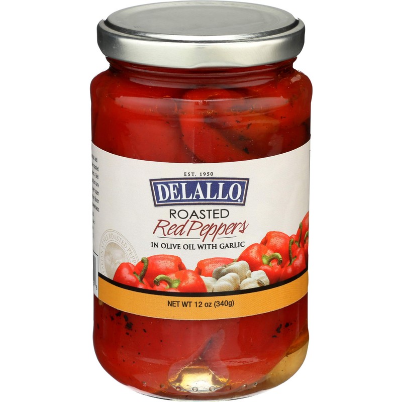 DeLallo Roasted Red Peppers w/Garlic, 12-Ounce Jars (Pack of 12)