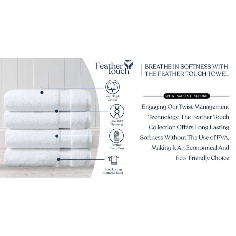 - FEATHER TOUCH & QUICK DRY TECHNOLOGY: Feather Touch gives long lasting softness without use of PVA. Quick dry technology ensures incredibly absorbent construction and weaves through Zero twist loom making these towels ultra-absorbent. Low Lint helps prevent shedding and Fade Resistance helps this bath sheet maintain its color through washing.