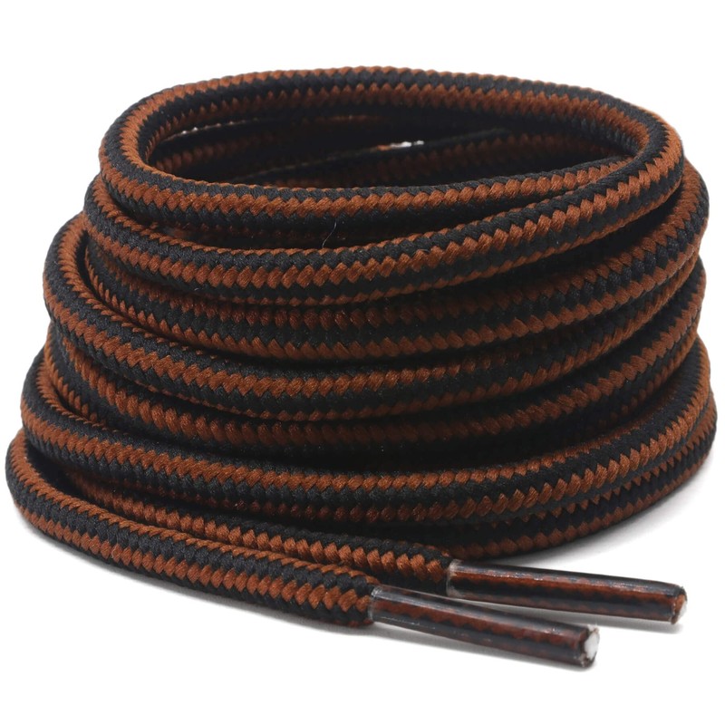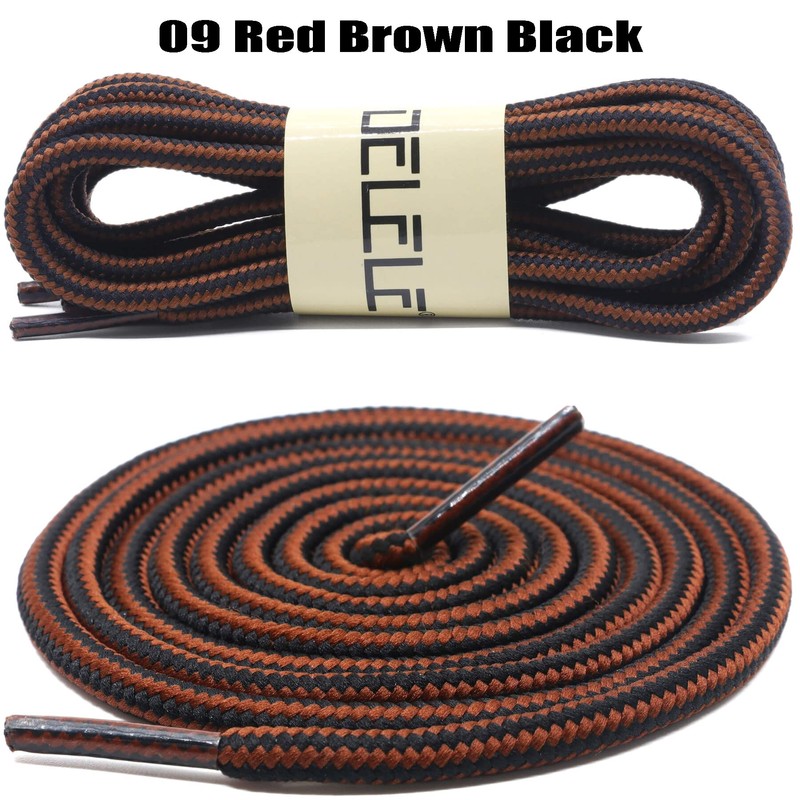 DELELE 2 Pair Round Boot Laces Outdoor Hiking Walking Shoelaces Rope Red Brown Black Striped Shoe Lace Work Shoe Strings 55 inches