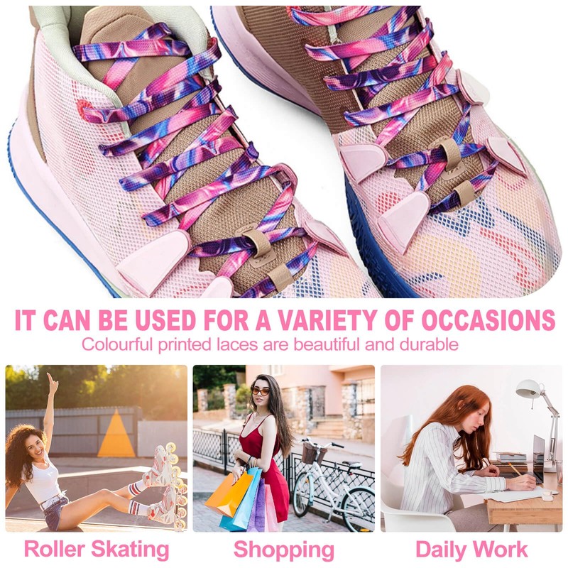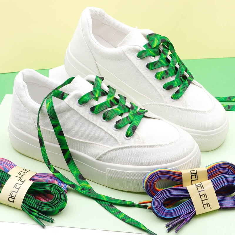 - Package: include 2 pairs(4 laces)multicolored flat shoe laces per order, when you put quantity "1", means you will get two pairs of fun printed colorful shoelaces design which in the same style; The replacement laces for kids, adult, men, womens; The length of pattern flat shoe laces error range: 1-5CM; Errors are unavoidable due to machine measurement.