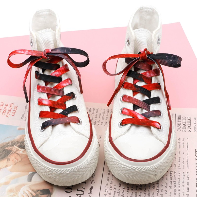 DELELE Flat Gradient Shoe Laces: Red Star Sky Print Shoelaces Sneakers 55 inch 2 Pair