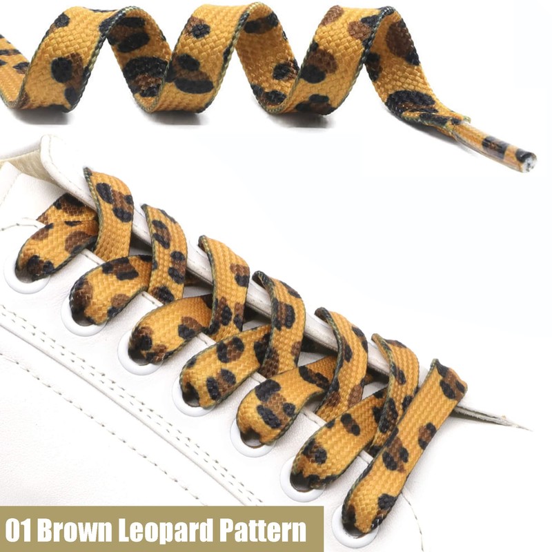 DELELE Leopard Print Flat Shoelaces: Brown Sneakers Shoe Laces 55 inch 2 Pair