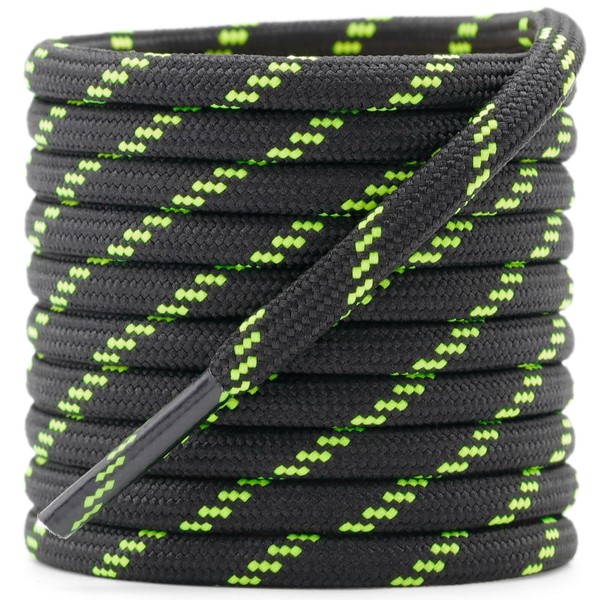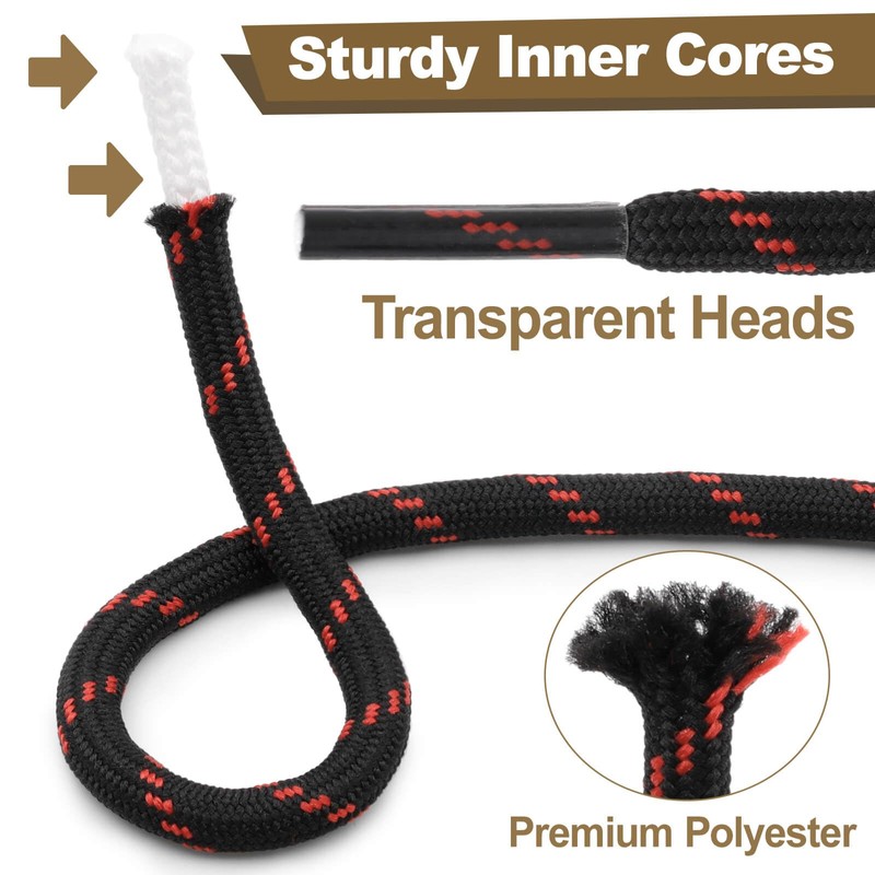 - BOOT SHOELACES FEATURE: Our round boot shoestrings are tightly woven from multiple strands of high-quality polyester thread, ensuring they can withstand regular wear and tear. The premium stain process ensures that these boot shoe laces can be washed multiple times without fading. Each shoelaces has a 2cm transparent tips heads to protect the shoelaces tips from fraying and make laces easy to thread shoe holes.