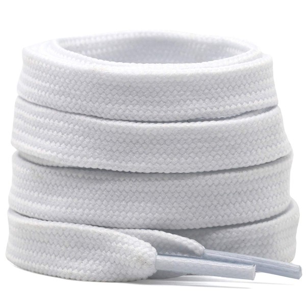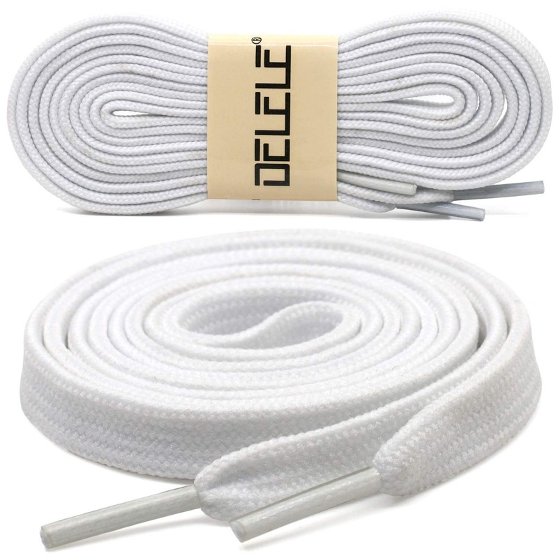 DELELE Solid Flat Shoelaces Hollow Thick Athletic Shoe Laces Strings 2 Pair, 01 White, 55 inch (140CM)