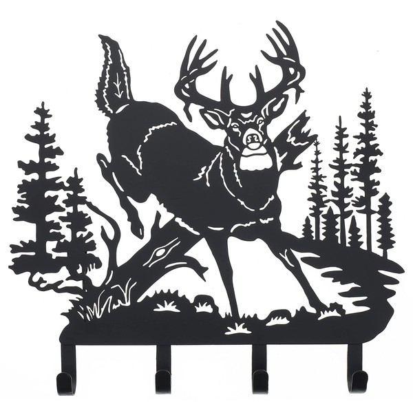 Deleon Collections Deer Scene Wall Hooks - Metal Heavy Duty 13" x 13" Massive Antler Buck in Woods Coat, Hat Rack, Key Holder