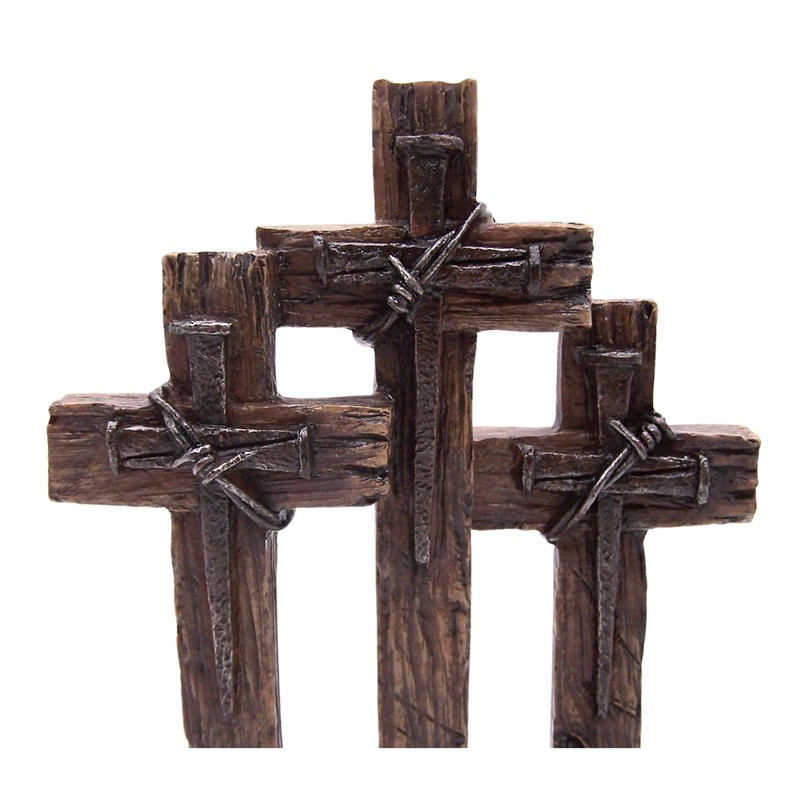- The arrangement of the three crosses evokes the powerful imagery of Calvary, making it a meaningful addition to any Christian home or sacred space. This piece serves as a constant reminder of faith, sacrifice, and redemption, bringing a sense of peace and spiritual reflection to your environment