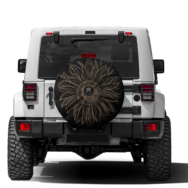 - MATERIAL : Our tire covers are made of high quality polyester fiber, durable waterproof fabric. Effectively protect your spare tire from sun damage, dirt, rust, corrosion and all types of weather.