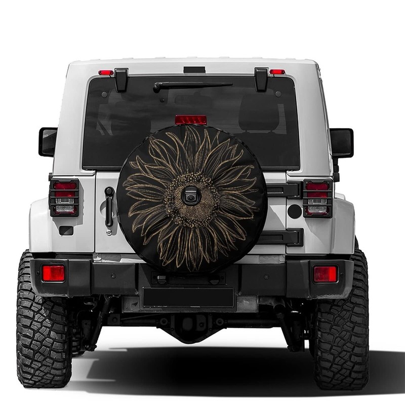 Delerain Sunflower Spare Tire Cover with Backup Camera Hole Wheel Protectors Sun Protector Waterproof for RV Trailer RV SUV Truck and Many Vehicle(16 Inch for Diameter 29"-31")