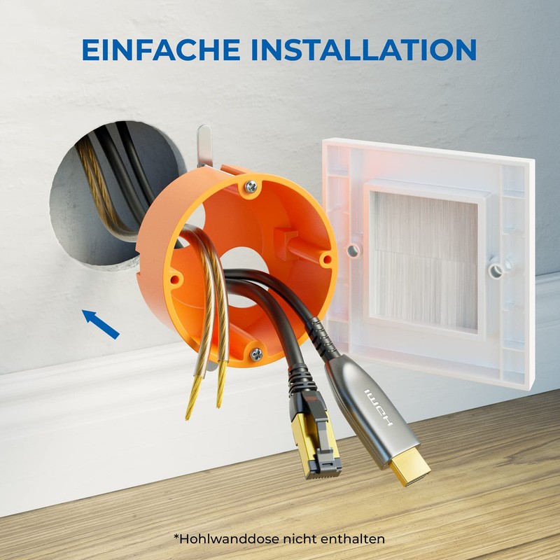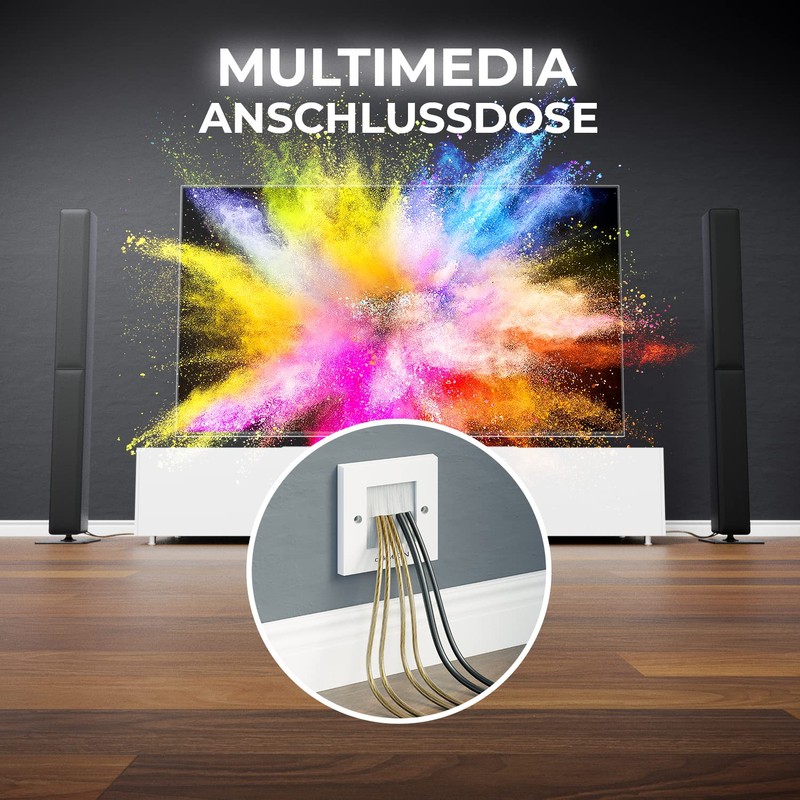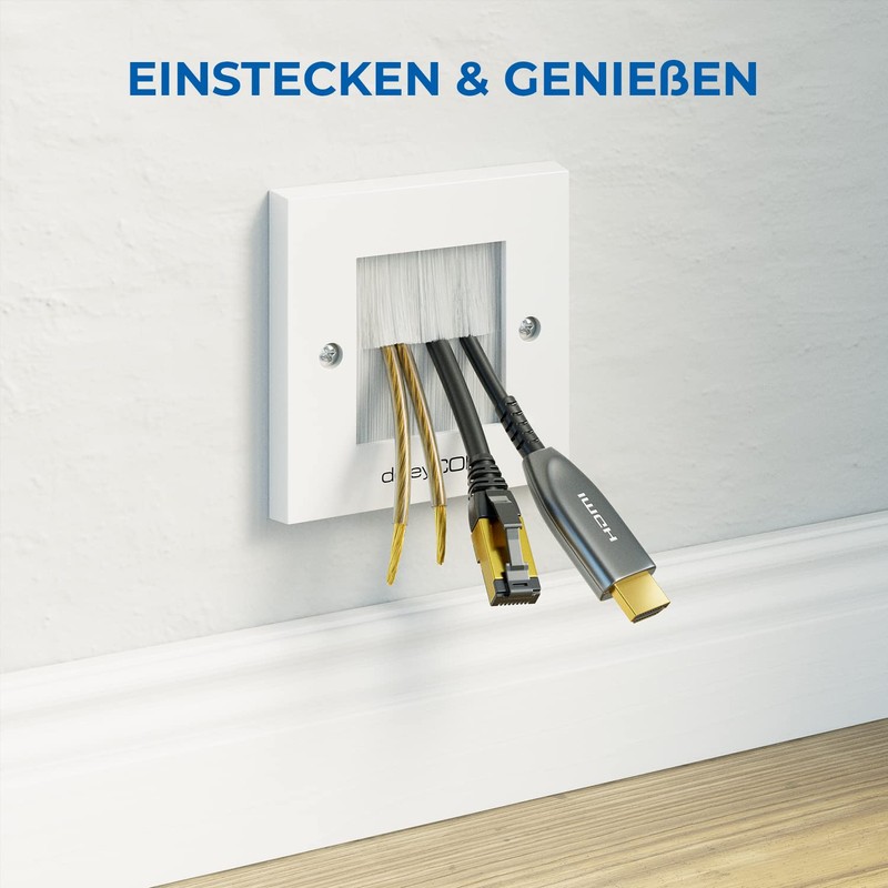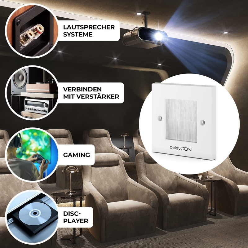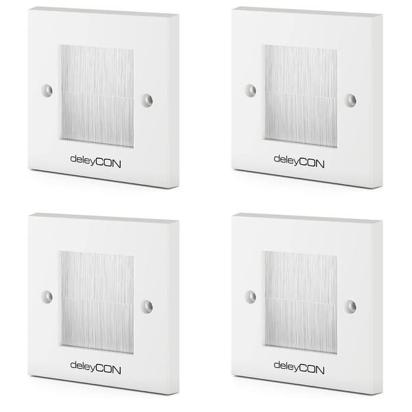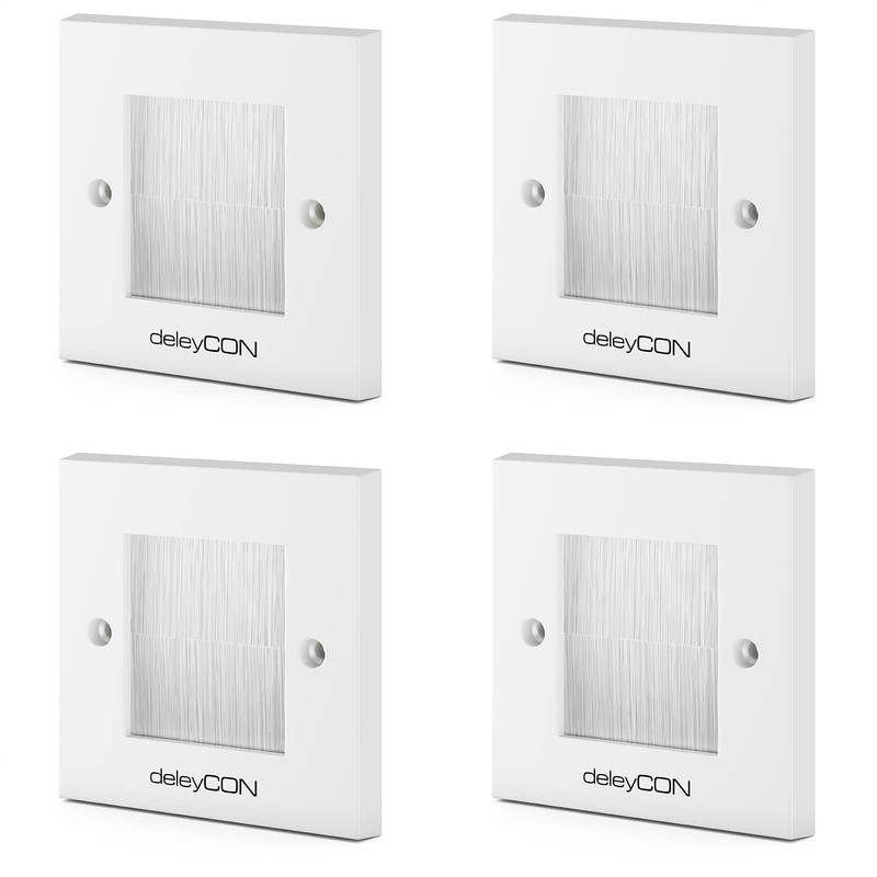 deleyCON 4x Multimedia Wall Socket Connection Box Cable Enclosure Cable Panel Cover Flush-Mounted Socket Wall Plate with Brush Bristles for Multimedia Cables
