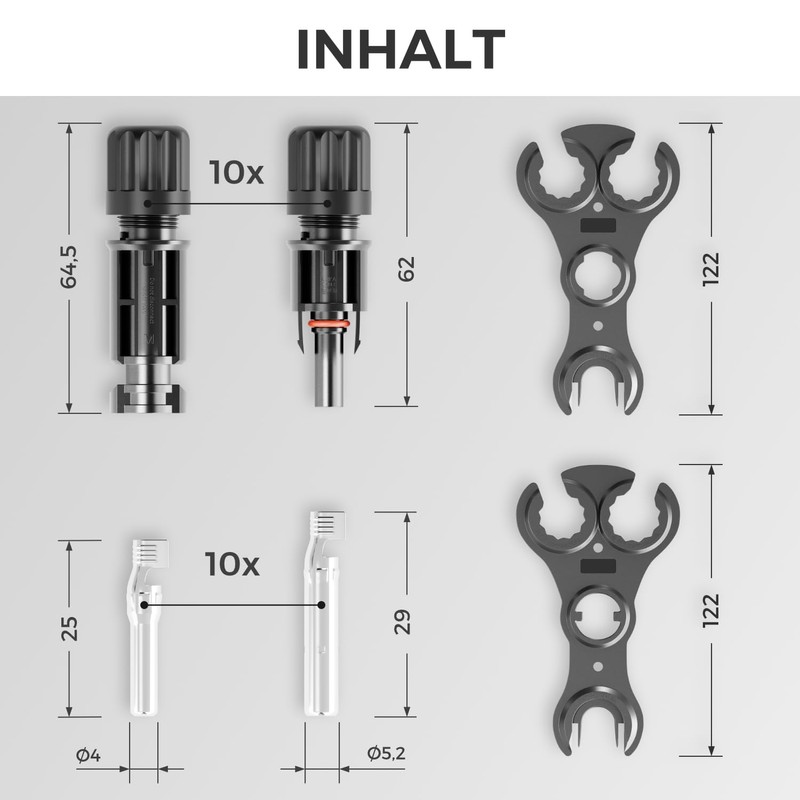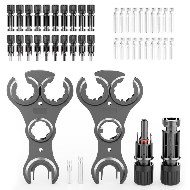 deleyCON Solar Plug 10 Pairs - PV4 Solar Plug Male Female 1500 V & Tool - IP68 Waterproof - For Solar System, Solar Panel, Photovoltaic (PV) System - For 2.5 mm² to 6 mm² Solar Cable