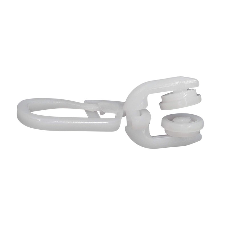 - This quality product made of white plastic was made in Germany and fits perfectly into your T-rail system for sliding curtains.