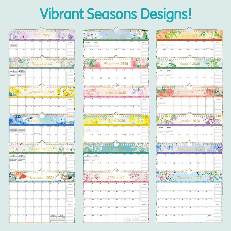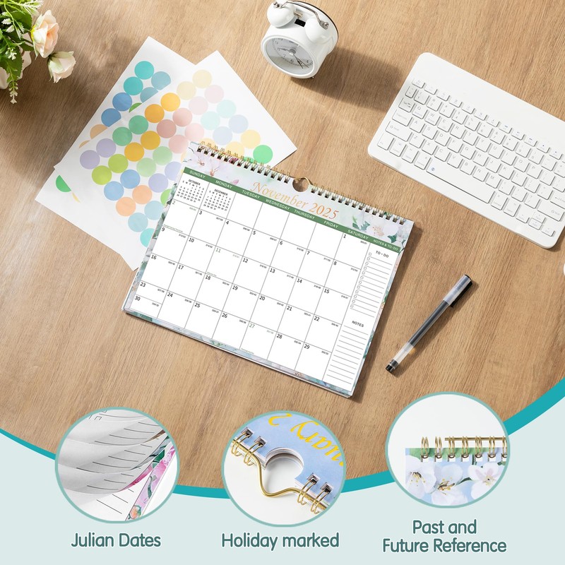 - Stay Organised All Year Long: This 11" x 8.5" wall calendar covers 18 months from July 2025 to December 2026, perfect for keeping track of your schedule. With plenty of room for notes and clearly marked holidays, this wall calendar 2025-2026 will help you manage your time without missing any important dates. Including 2 sheets of 96 round stickers for better marking.