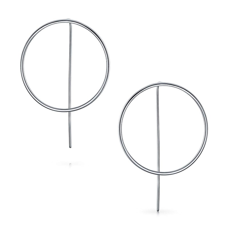 - These lightweight fetching earrings feature a large sized circle drops from the ear lobe, facing a horizontal direction for major visual appeal and a contemporary style statement. Each piece is stamped .925 guarantees the quality and craftsmanship. For Pierced Ears.