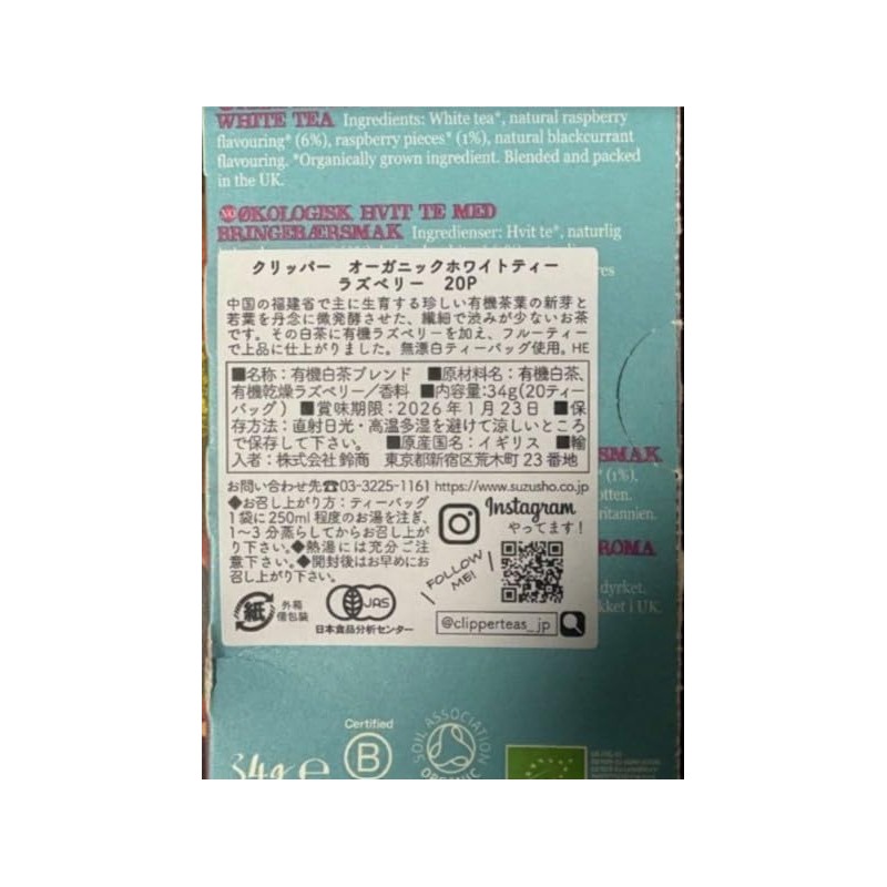 DELICIOSA Clipper Organic White Tea Raspberry 20P [Organic JAS] Clipper White Tea With Raspberry