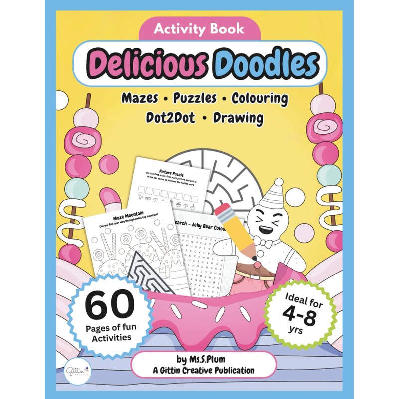 Delicious Doodles - Activity Book: Fun puzzles, mazes, colouring, drawing activities and more for 4-8 year olds.