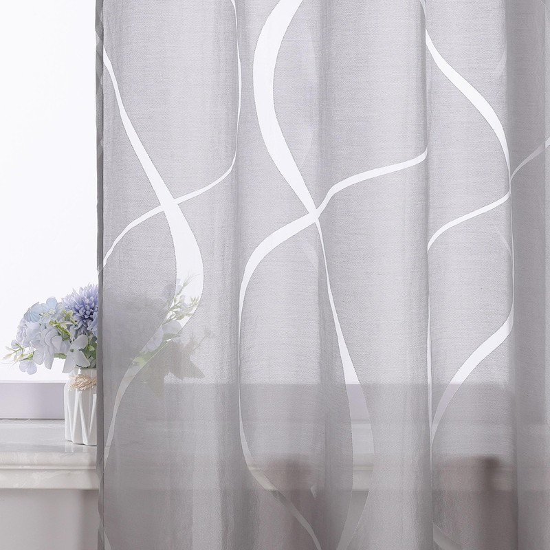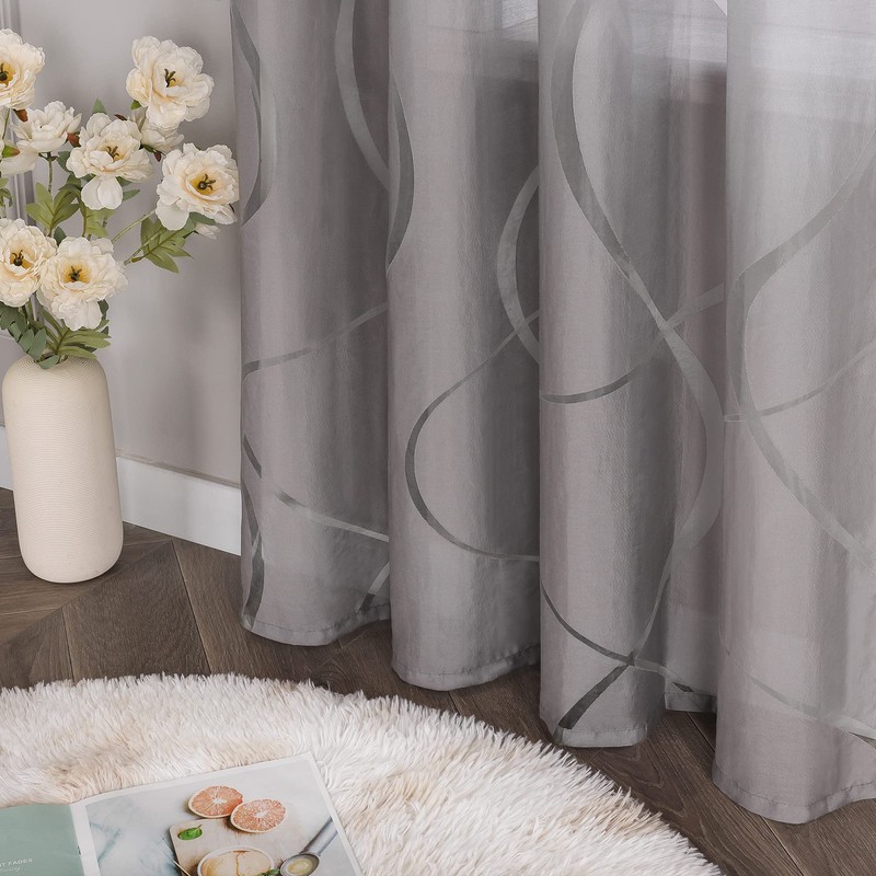 Delien Curtain Scarves, Burnout Transparent Curtains with Eyelets, Modern "Waves" Window Curtains, Living Room, Panel Curtains, Eyelet Curtains with Wave Pattern, Pack of 1, Grey, W x H 140 x 225 cm