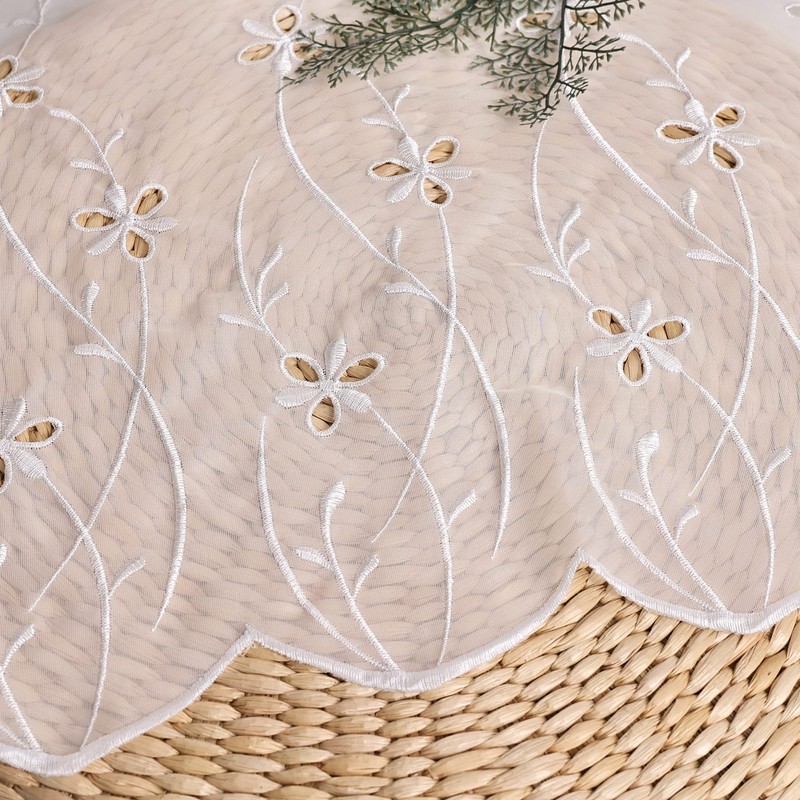 - Material: 100% polyester, voile openwork panel curtain with embroidery. Contents: 1 piece