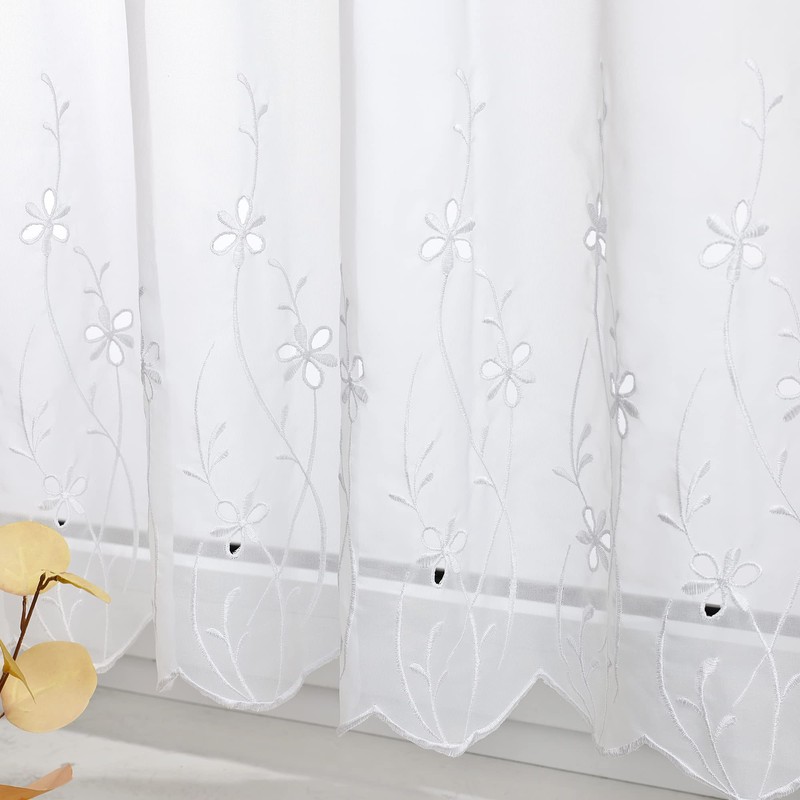 Delien Voile Bistro Curtains for Kitchen, Transparent Panel Curtain, Country House Short Curtain, Modern "Floral Branch", Embroidered Curtain with Drawstring, W x H 120 x 30 cm, White
