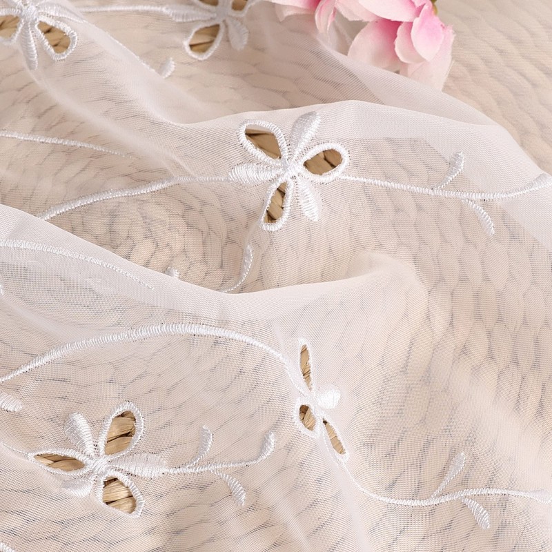 - Material: 100% polyester, voile openwork panel curtain with embroidery. Contents: 1 piece