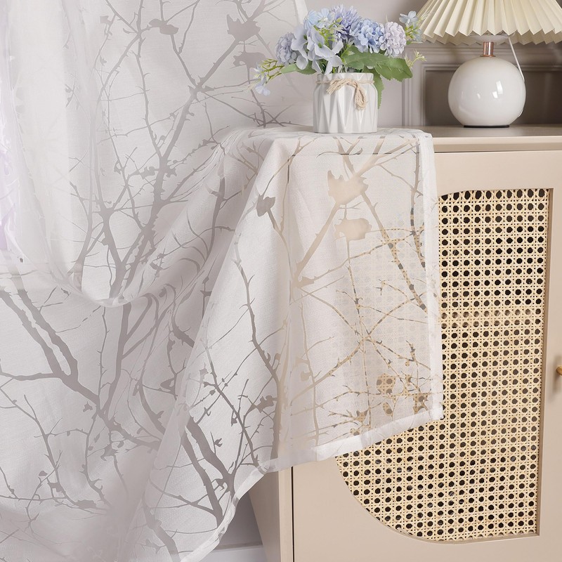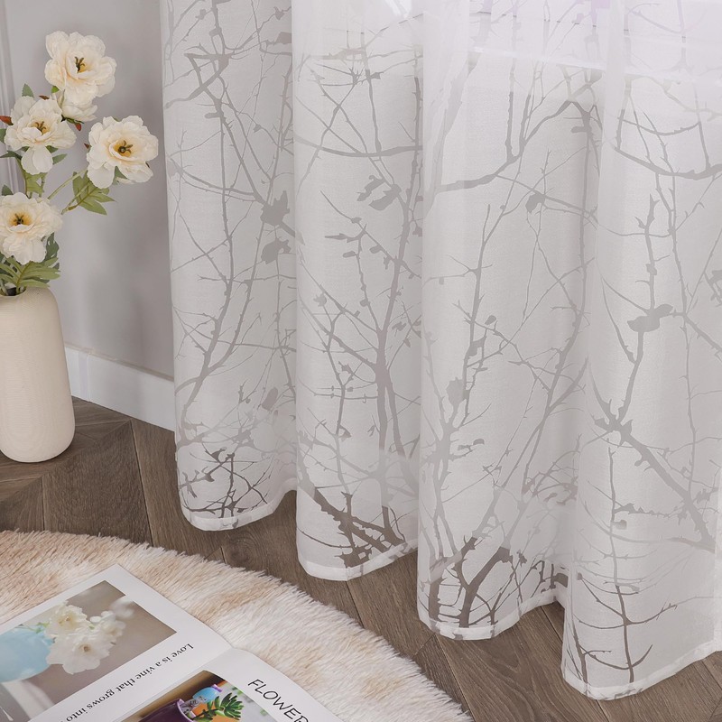 - The simple, elegant branch pattern of the burnout curtain creates a great, stylish look in your home.
