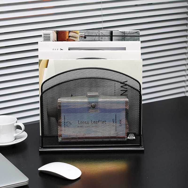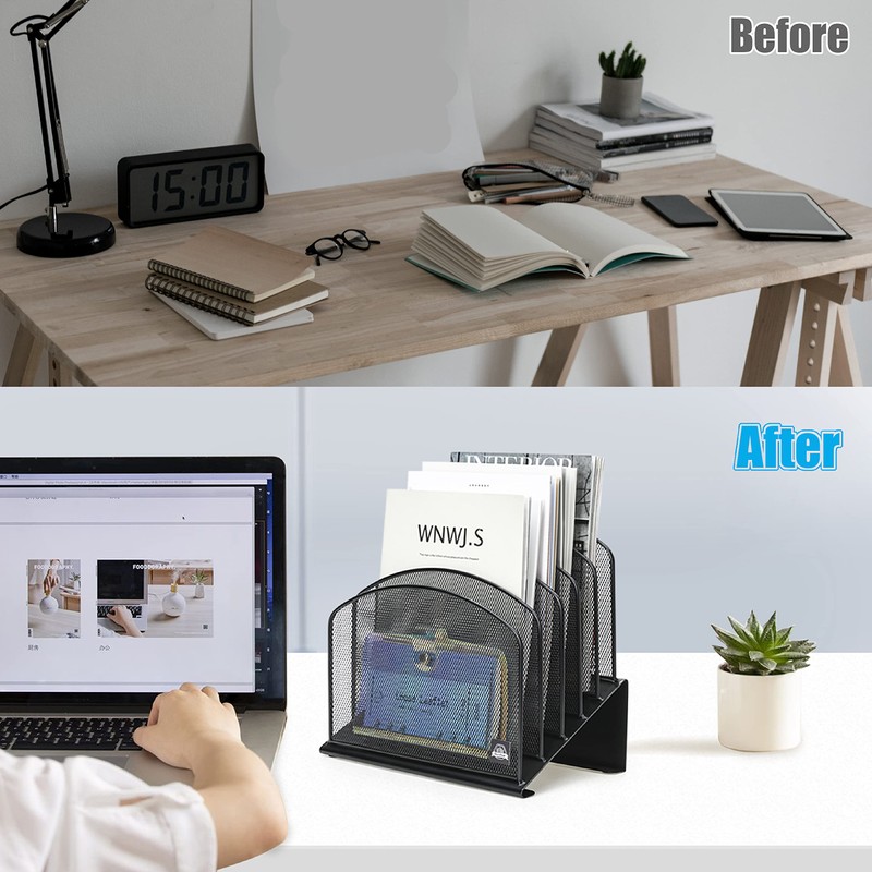 Delifox File Organizer Metal Rack, 5 Sections Office Desktop Document Holder, Mail Sorter, Mesh Collection