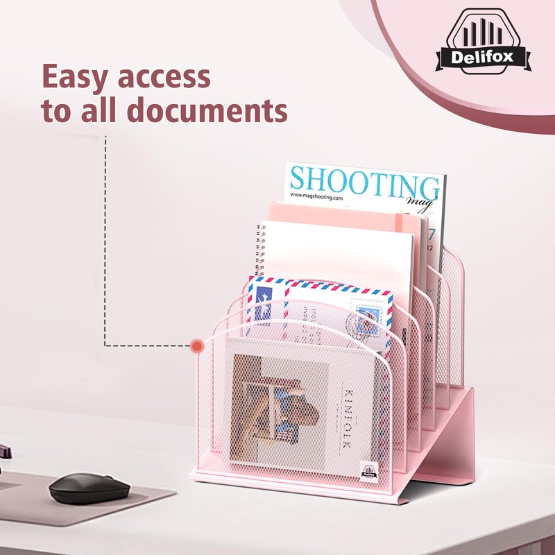 - ▶ SUFFICIENT SPACE FOR STORAGE. Delifox 5-compartment desktop file organizer is large enough to hold and classify many document or papers so as to eliminate worry of document run-off and keep track of files, folders, and other important papers