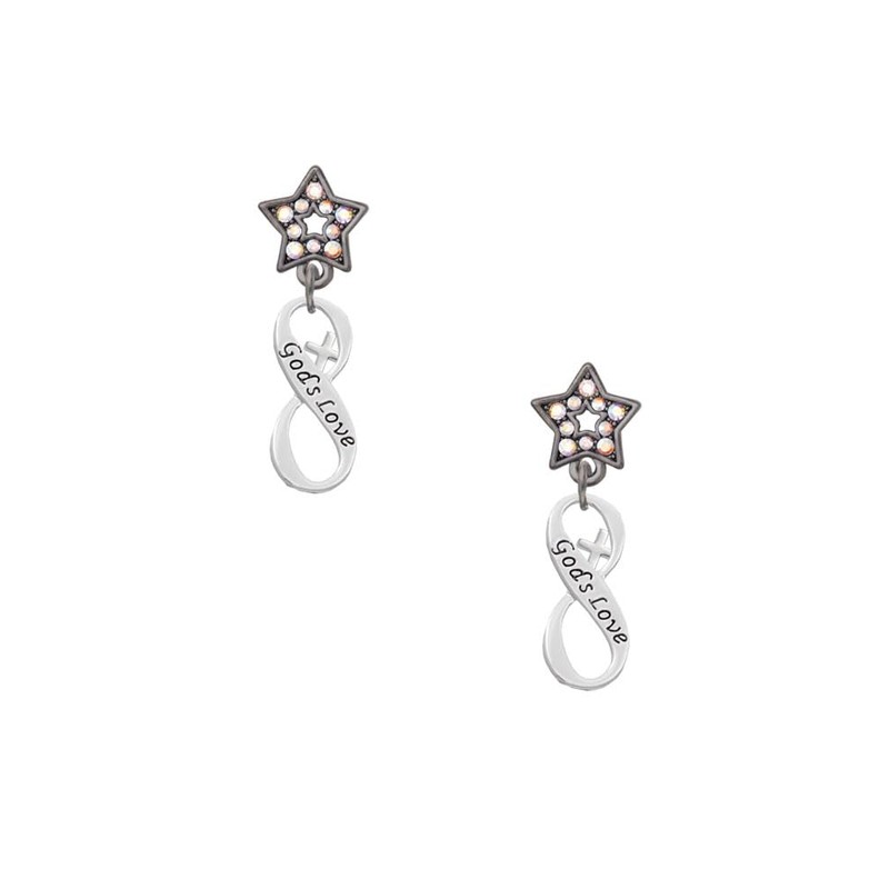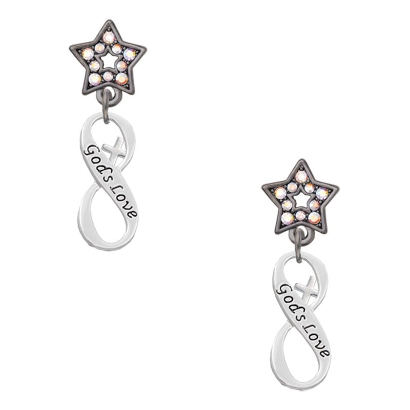 - Silvertone God's Love Infinity Sign Black Nickel Plated Dream Big Star Post Earrings.