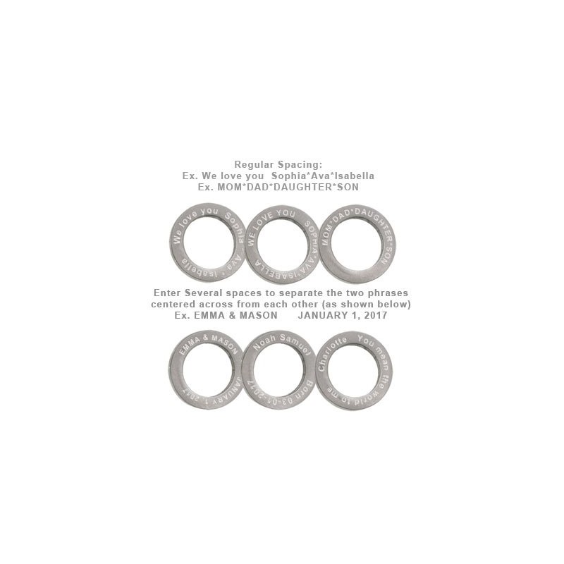 - Stainless Steel Affirmation Ring is approx. 0.77 x 0.77 x 0.1 (HxWxD). Personalize with up to 36 characters.