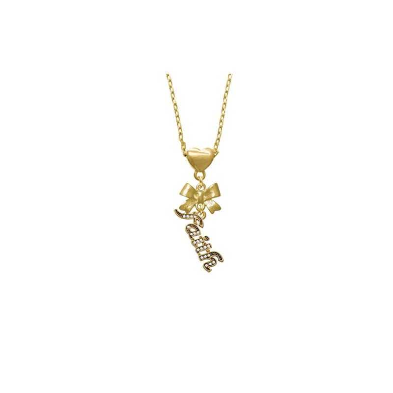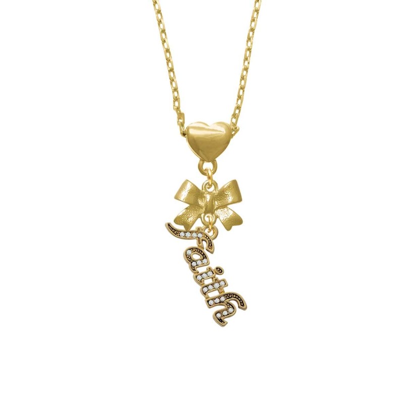 - Goldtone Script "Faith" with Clear Crystals Goldtone Bow Heart Necklace, 18+2" Extender.