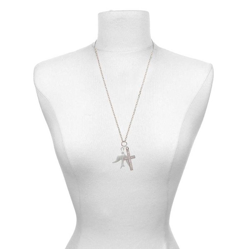 - Silvertone 3-D Dove I Set You Apart Engraved Cross Zoey Necklace, 28".