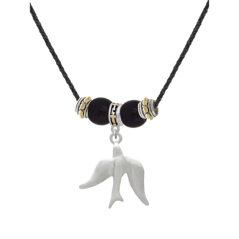 - Silvertone 3-D Dove - Two-tone Cross Black Beaded Necklace.