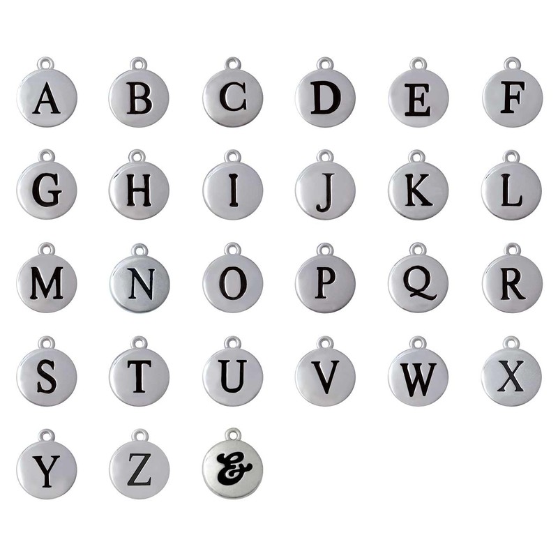 - Silver-tone plated round initial charm size is approx. 0.59 x 0.50 x 0.09 inches (HxWxD) including loop. Available in all the letters and ampersand.