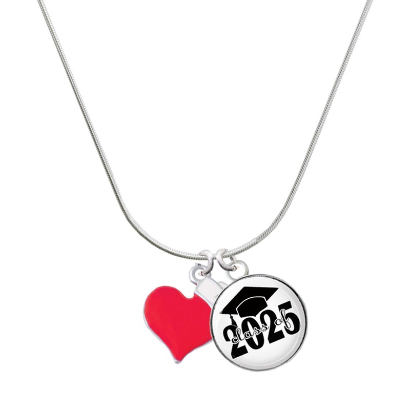 Red Heart with Nurse Hat Script Class of 2025 Dome Charm Necklace, 18". Charm size is approx. 0.73 x 0.72 x 0.17 inches (HxWxD) including loop. Silvertone snake chain necklace is 18 inches with a lobster claw clasp. Glass Dome Black Graduation Cap with Class of 2025 is approx: 0.9 x 0.7 x 0.2 inches (HxWxD) including loop. High quality printed paper sealed under a glass dome in a metal frame. Light weight necklace makes a wonderful graduation gift, or jewelry for graduating seniors. Hand assembled in the USA from imported parts. Our jewelry is meticulously hand assembled in the USA, ensuring exceptional quality and craftsmanship. Each piece is created using carefully sourced imported components, resulting in unique designs that reflect both elegance and artistry. Perfect for any occasion, our collection offers a blend of sophistication and individuality, making it a cherished addition to your accessory wardrobe. PLEASE NOTE: Our products are not intended for children 14 years and younger.