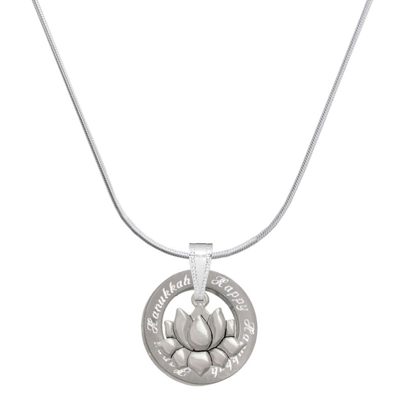 - Silvertone Small Lotus Flower - Silvertone Happy Hanukkah Message Ring Necklace, 18".