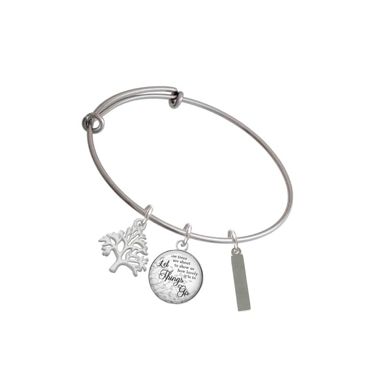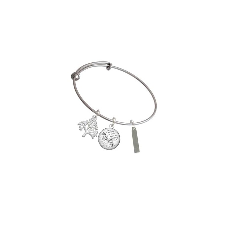 - Stainless Steel Rectangular Blank Tag - Silvertone Let Things Go Tree Charm Bangle Bracelet.