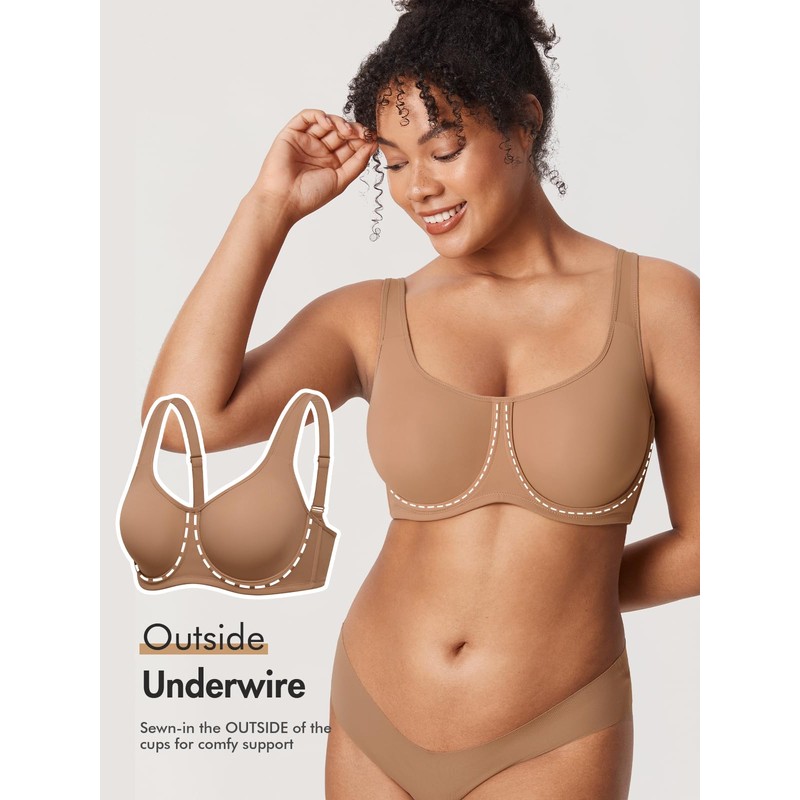 DELIMIRA Women's Confishape Full Coverage Bra Plus Size Supportive Underwire Unlined Comfortable Bras Gravel Beige 40D
