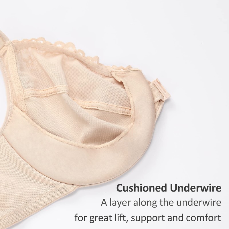 DELIMIRA Women's Front Closure Bras Plus Size Lace Full Coverage Underwire Unlined Bra Beige 38E