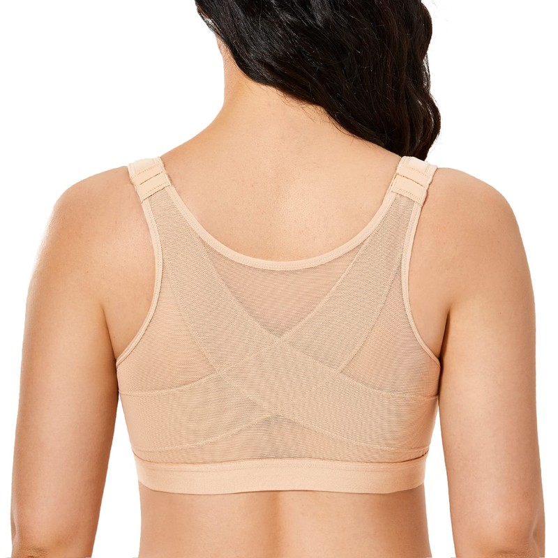 DELIMIRA Women's Front Closure Posture Wireless Back Support Full Coverage Bra Oatmeal Heather 42G