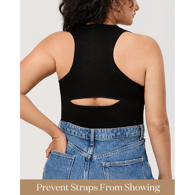 - Racerback design provides medium support.