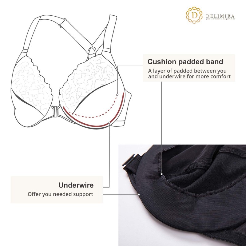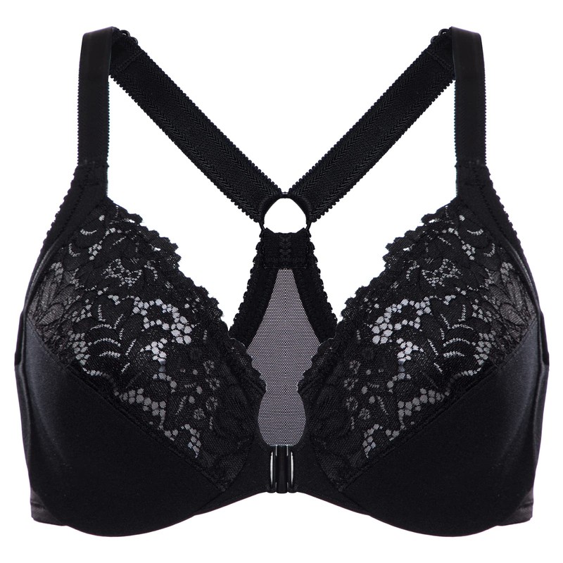 DELIMIRA Women's Front Fastening Bra with Underwire, Full Coverage, Large Sizes, black