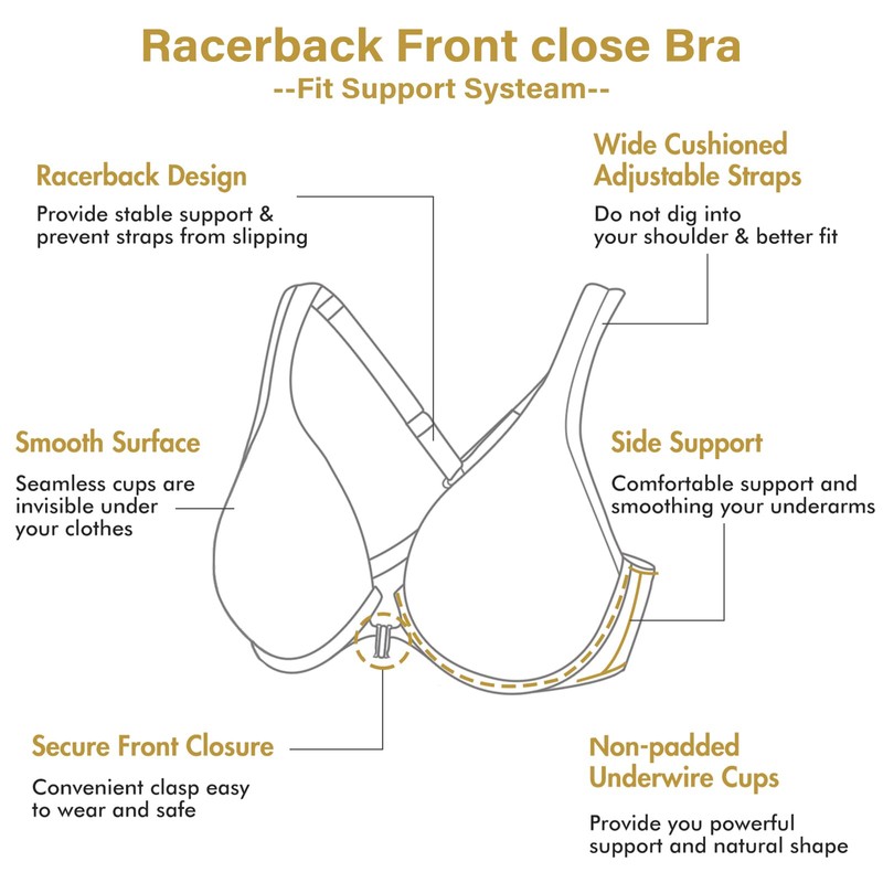 Delimira Women's Front Fastening Bras Underwire Unlined Racerback Plus Size Bra White 34C