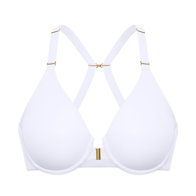 DELIMIRA Women's Inbarely Plus Front Closure Bras Racerback Full Coverage Plus Size Unlined Underwire Bra White 36D