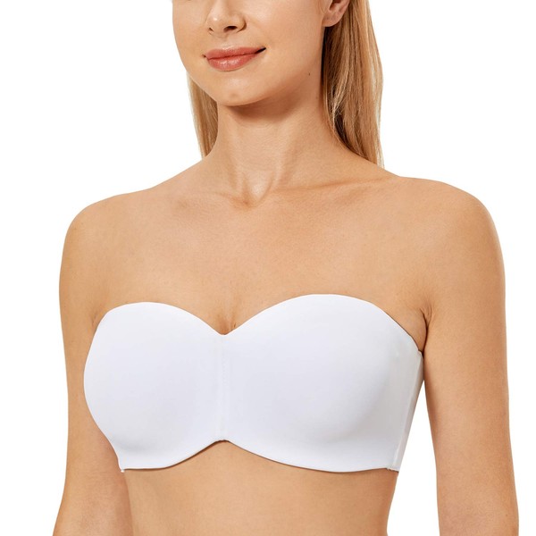 Delimira Women’s Minimizer Strapless Bra with Underwired without Padding without Shaped Cups - White plain, size: 80E