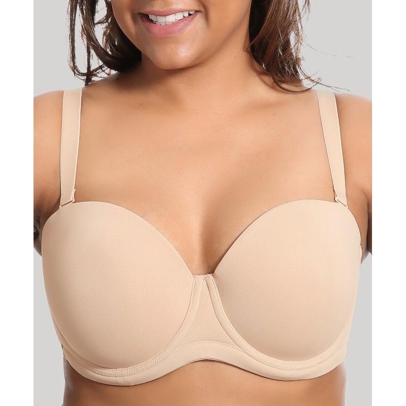 DELIMIRA Women's Underwire Contour Multiway Full Coverage Strapless Bra Plus Size Beige 36E