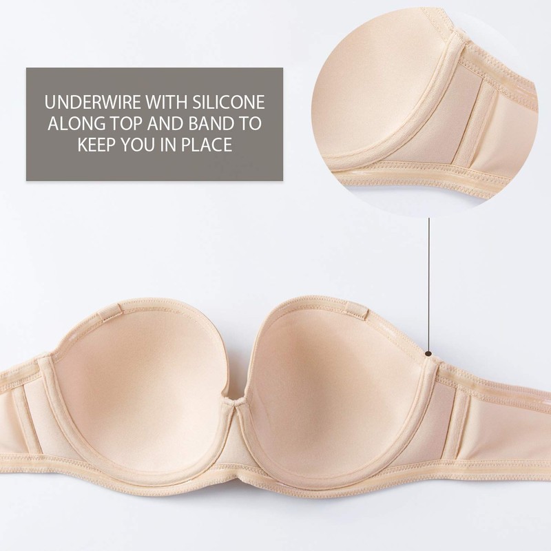 A lightweight strapless bra bares those shoulders while still giving your big chest comfortable & secure support. Perfect to match your low-cut style clothes and keep you attractive at a wedding or party.