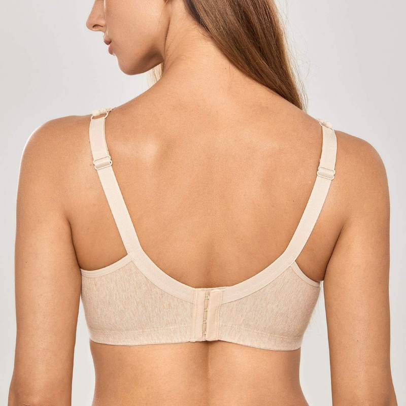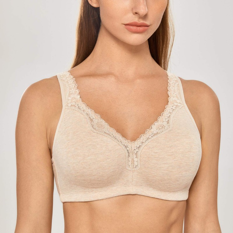 DELIMIRA Women's Wireless Plus Size Full Coverage Lace Bra Cotton Unlined Comfortable Oatmeal Heather 36C